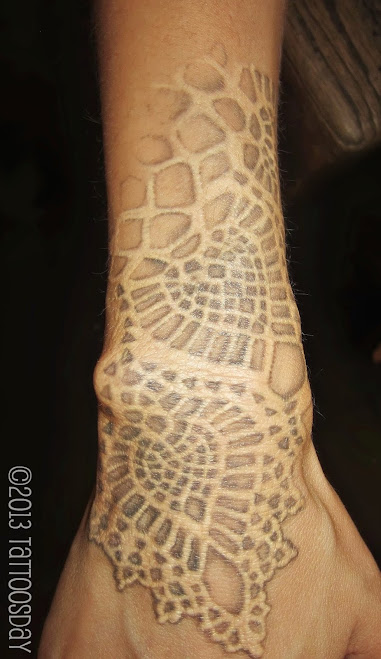 She explained to me that Babs had told her she "always wanted to do a lace doily tattoo and I said 'Sure, let's do it.' "